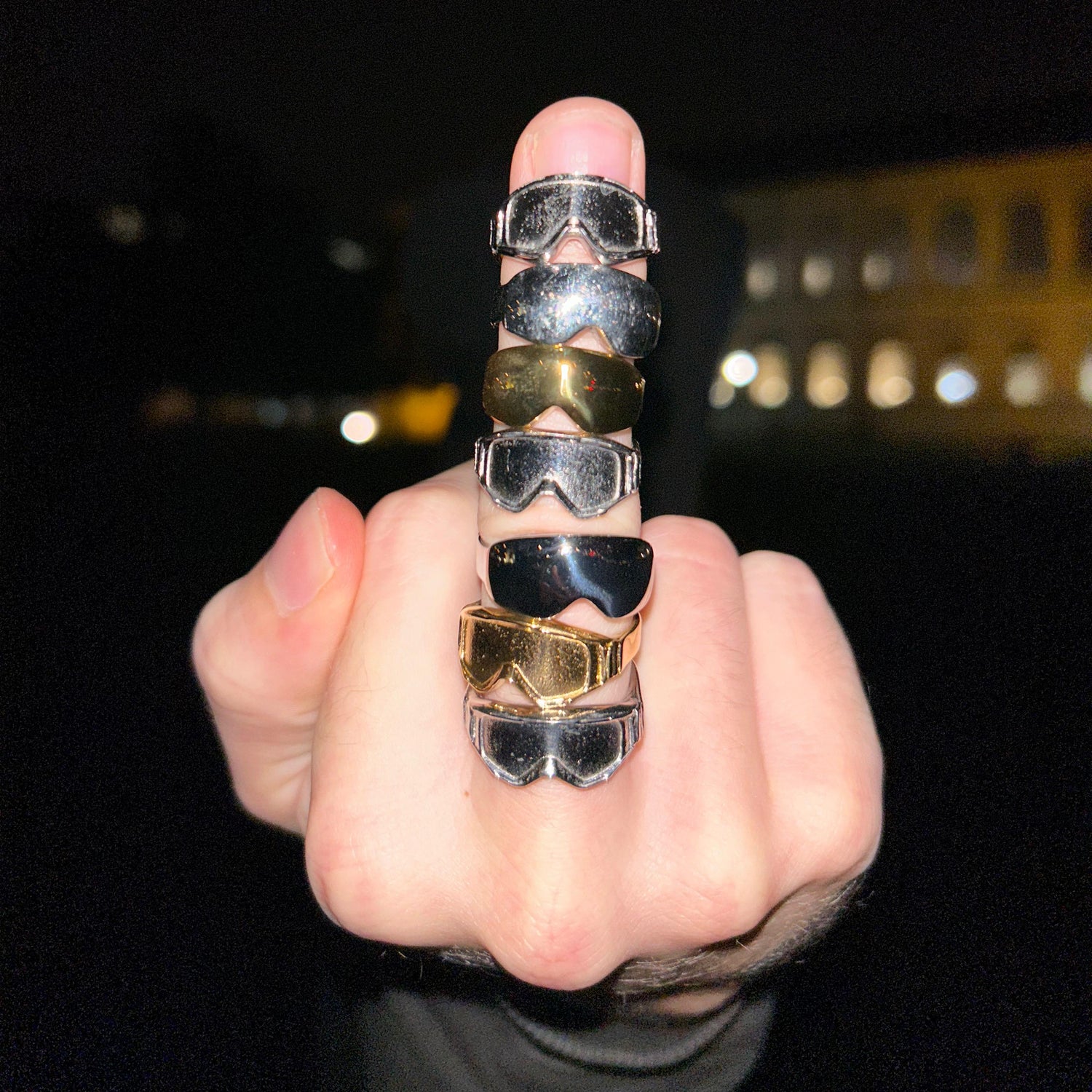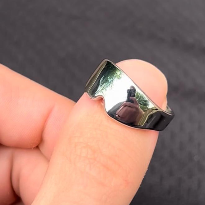 I got the idea after 3d scanning my goggles for another project. Shrink them down and you’ve got a ring. I liked it so much that I had a few hundred made in stainless steel.